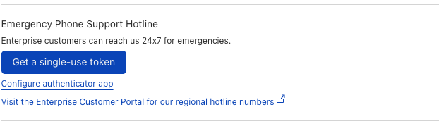 | Emergency Phone Use phone support to reach out during emergencies such as site outages or DDoS attacks. | Yes | No | No | No |